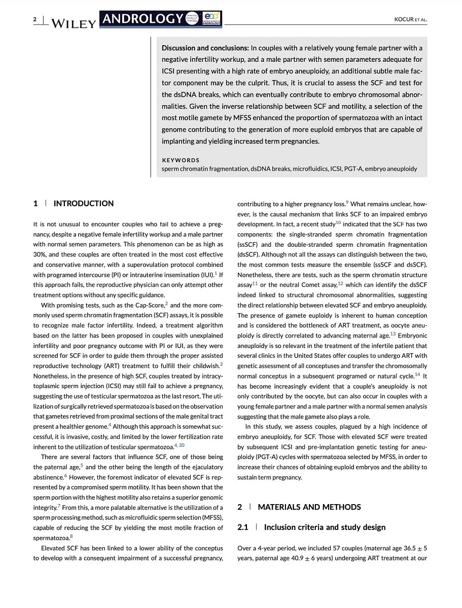 Představujeme Vám další velice kvalitně zpracovanou a recenzovanou publikaci z centra reprodukční medicíny Weill Cornell Medicine (New York, USA), jejíž součástí jsou i výsledky našich Zymot čipů na separaci spermií. Hlavním cílem Dr. Gianpiera Palerma bylo ověřit, zdali výběr spermií s nejvyšší genomickou integritou zlepšuje výsledky ICSI.