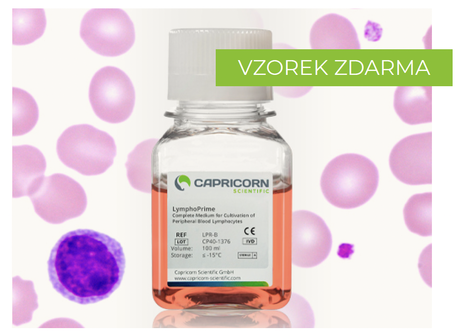 POST-NATALLymphoPrime™ 1 & 2 (Capricorn) katalogové číslo: LPR2-B a LPR-B — Vhodné pro krev obohacenou o lymfocyty — Kompletní médium připravené k okamžitému použití — Optimalizovaná koncentrace PHA — Jednoduché prokázání chromozomových aberací — Poskytuje jednoznačné výsledky |