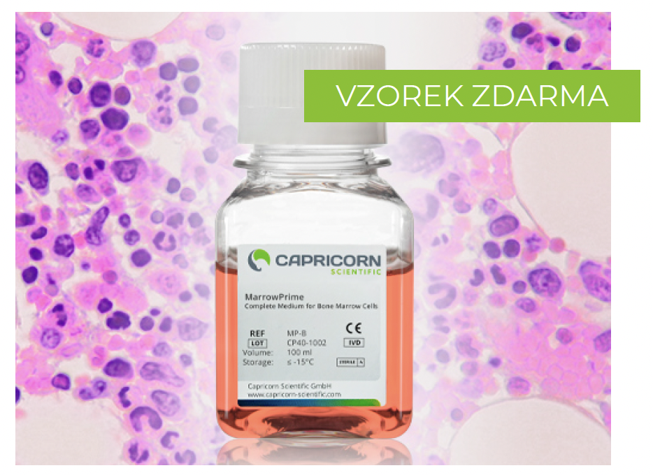 POST-NATALMarrowPrime™ (Capricorn) katalogové číslo: MP-B — Vynikající výkon — Vysoký mitotický index — Konzistence mezi jednotlivými šaržemi — Přesná chromozomální morfologie — Lepší než kondicionovaná média |