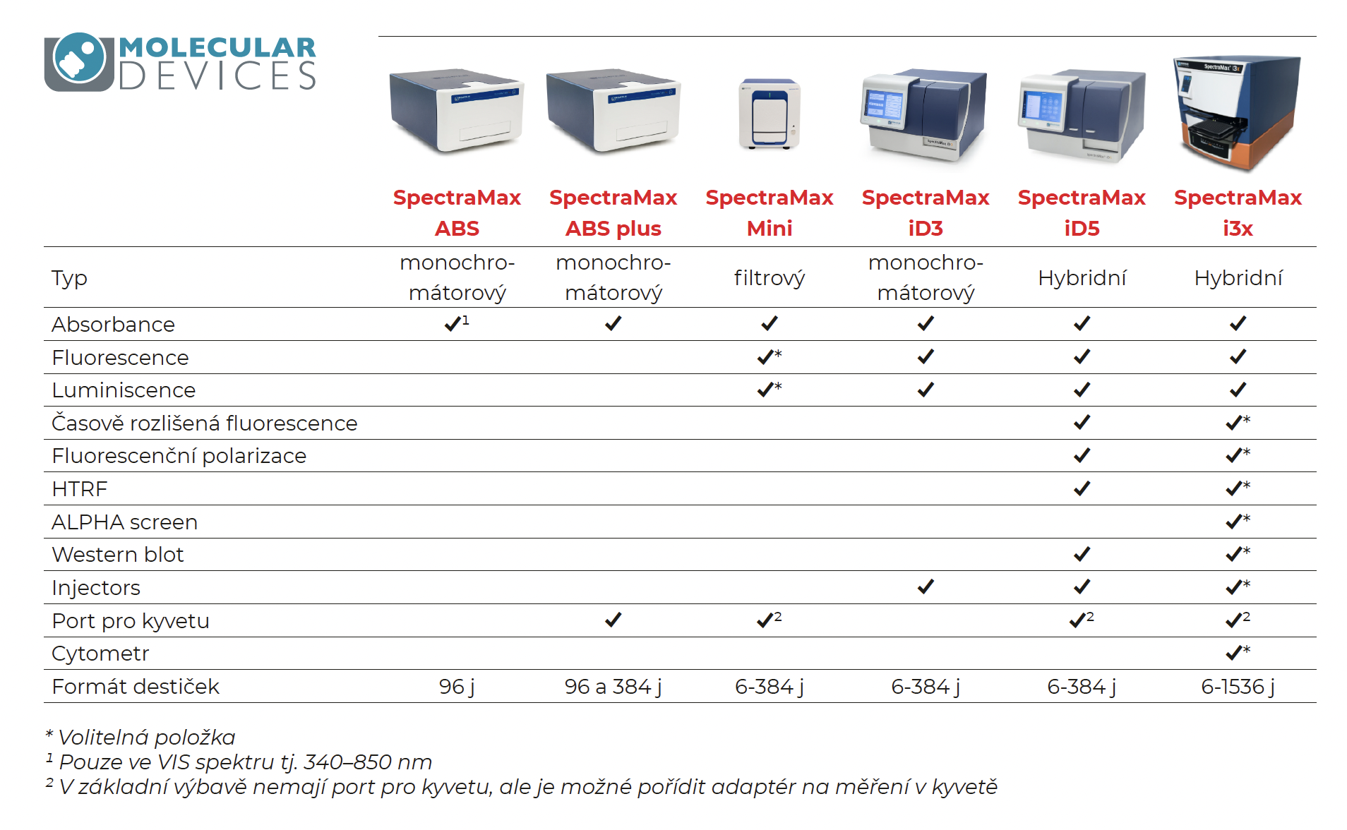 Americká společnost Molecular Devices je dlouhodobě jedním z nejlepších výrobců špičkových monochromátorových, hybridních i filtrových readerů. Většina jejich přístrojů má několik unikátních specifikací, díky kterým si udržují náskok před konkurencí a usnadňují, tak měření i vyhodnocování výsledků.