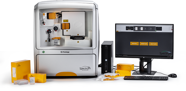 Spectrum CE je osmikapilární analyzátor s délkou kapilár 36 cm. Pracuje s Polymerem 4, přičemž má kapacitu čtyř 96 jamkových platíček, které jsou kontinuálně analyzovány. Analyzátor byl vytvořen pro kity typu PowerPlex zahrnující i nové osmibarevné kity, zároveň je možné pracovat i s dostupnými pěti a šestibarevnými oblíbenými STR multiplexy.