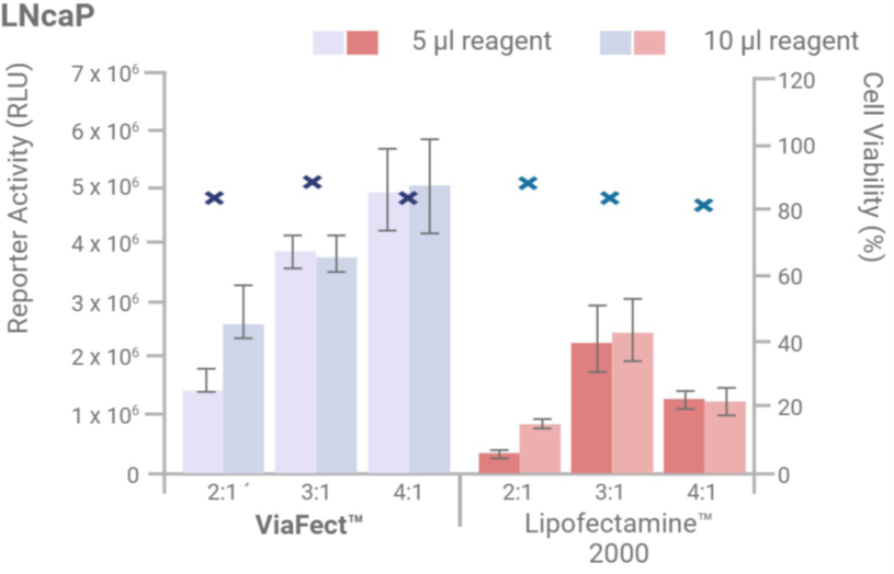 ViaFect je další variantou pro transfekci DNA do náročnějších buněk. Mezi hlavní výhody ViaFectu patří zejména vysoká účinnost a velmi nízká toxicita k buňkám. Zajišťuje tak vysoký stupeň transfekce za zachování zdravých viabilních buněk. Je obzvláště vhodný pro: