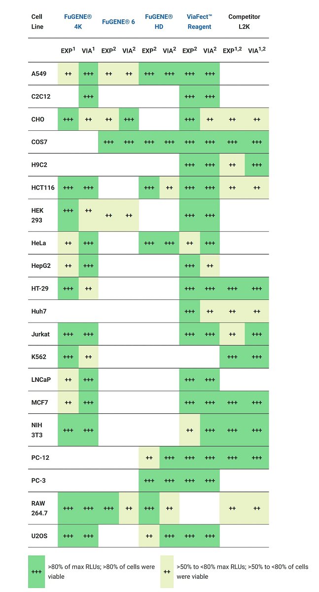 Promega už mnoho let nabízí kvalitní transfekční činidla řady Fugene, která poskytují vysokou účinnost transfekce a zároveň zachovávají vysokou viabilitu buněk. V nabídce je několik variant s odlišným složením pro transfekci DNA, které jsou vhodné pro různé typy buněk. Novinkou je i Fugene určený pro transfekci siRNA. Další variantou je pak i transfekční činidlo Viafect vyvinuté přímo společností Promega. Níže najdete přehled jednotlivých variant s příklady buněčných linií, pro které jsou nejvhodnější.