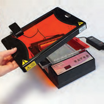 Base Station DNA-View with Blue LED illuminator integrated power supply and lid for Choice Gel tank with extractor fan and light filter