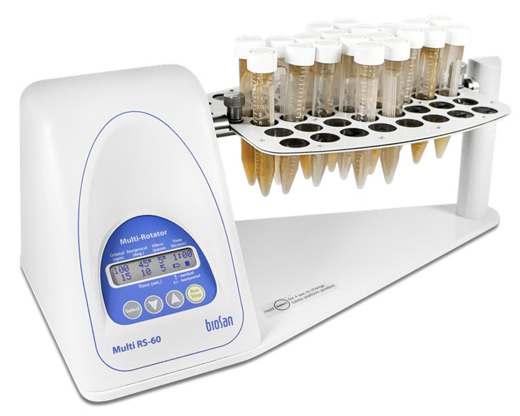 Rotátor Multi RS-60 je ideálním přístrojem pro laboratorní procedury, které vyžadují nepřetržité míchání. Díky variabilitě rychlostí lze regulovat míchání od jemného pohybu až po intenzivní třepání. Lze jej použít při různých procedurách jako např.: vmíchávání krevních suspenzí nebo tkáňových vzorků, homogenizace krevních buněk a plazmy atd. Rotátor může pracovat v chladové místnosti nebo v inkubátoru v operativní okolní teplotě od 4°C do 45°C. V ceně přístroje je nástavec na 48 zkumavek do 14 mm v průměru (1,5 ml, 2 ml, 15 ml). Možnost upgradu u další nástavce, viz doporučené příslušenství.