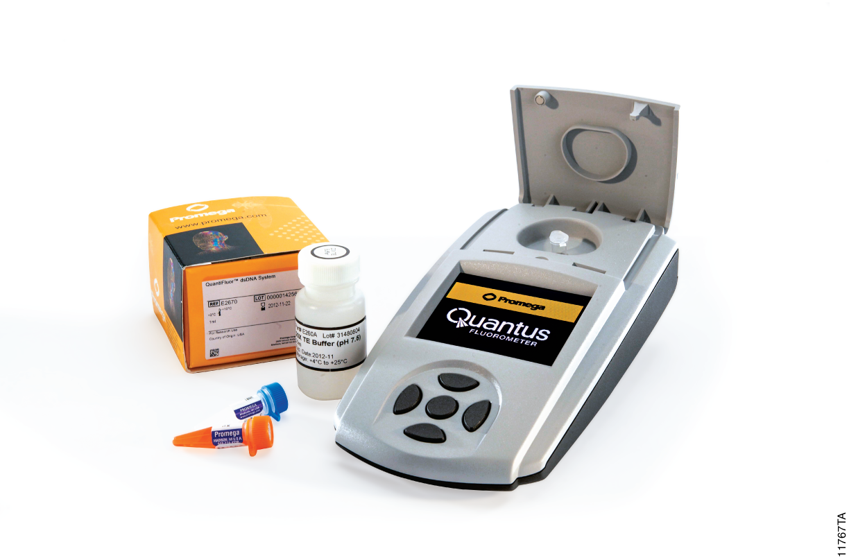 Quantus Fluorometer je kompaktní dvoukanálový fluorimetr navržený pro vysoce citlivou detekci a kvantifikaci nukleových kyselin. Je přednastavený pro použití s QuantiFluor detekčními systémy pro specifickou kvantifikaci dsDNA, RNA a ssDNA od firmy Promega a zároveň umožňuje nastavit vlastní metody pro další fluorescenční barviva. Přístroj disponuje dvěma fluorescenčními kanály s excitační vlnovou délkou 495 nm a 640 nm. Limit detekce dsDNA je 10 pg/µl a má tak 10x vyšší citlivost než konkurenční fluorimetr Quibit. Je tak vhodný i pro měření velmi nízkých koncentrací DNA. Měření koncentrace je vhodné pro NGS a je kompatibilní s platformami Illumina (Hiseq/miSeq), Roche (454) a LifeTech (ion Torrent and ion Proton).