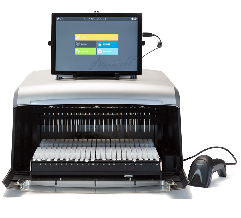 Maxwell® Rapid Sample Concentrator (RSC) 48 je přístroj umožňující automatizovanou purifikaci nukleových kyselin z 1 až 48 vzorků v jednom běhu. Jedná se o uzavřenou platformu, která využívá předplněných reagenčních kazet s izolačními roztoky. Izolace probíhá vazbou na povrch magnetických částic, které jsou mezi jednotlivými promývacími roztoky přenášeny pomocí magnetických tyčí s jednorázovým návlekem. Přístroj tudíž nevyužívá žádné pumpy a není náchylný k poruchám nebo ucpávání hadiček.