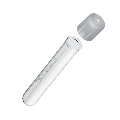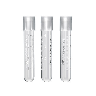 Kulaté dno Dvoupolohový uzávěr pro individuální nastavení proudění vzduchu Bílé tištěné dělení od 0,5 do 14 ml v krocích po 0,5 ml Výška: 100 mm