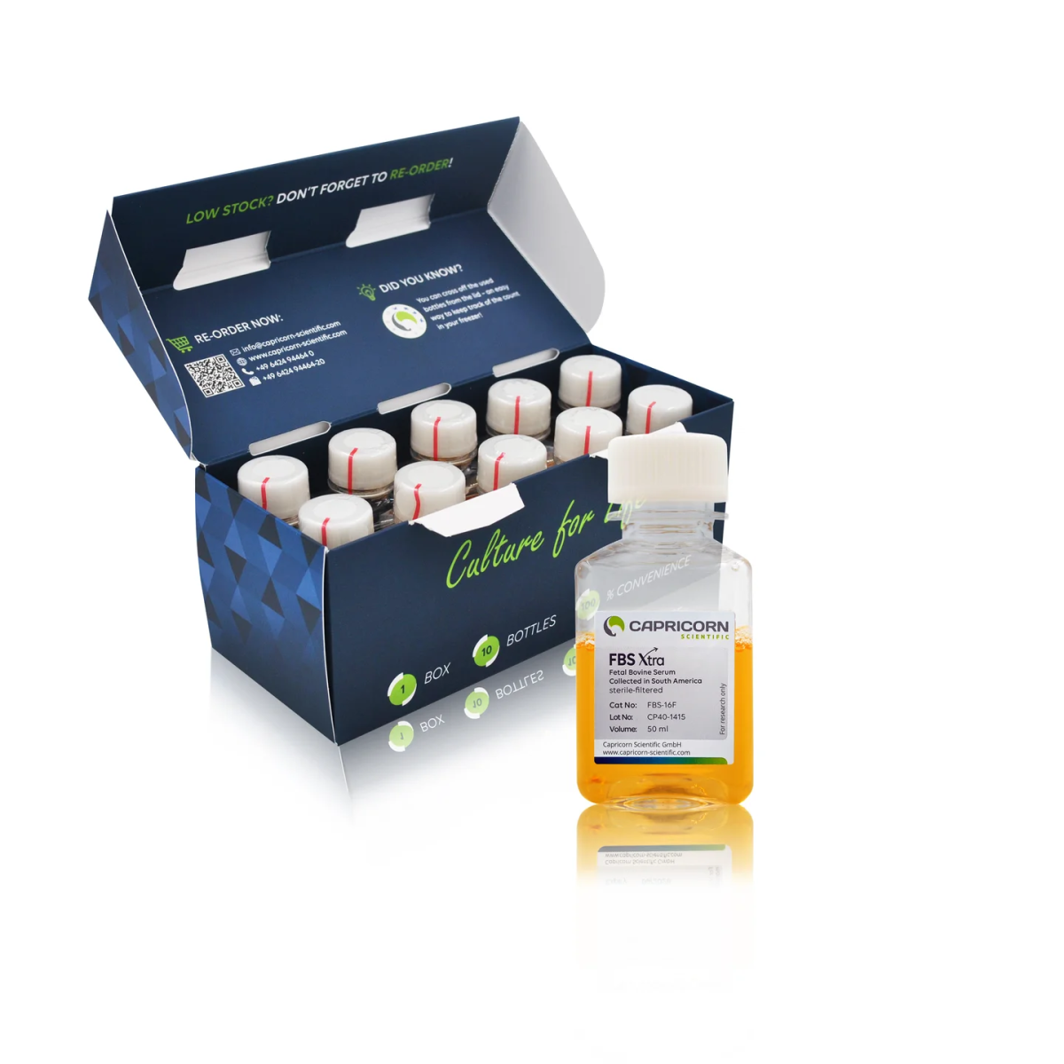 FBS Xtra obsahuje klíčové složky pro optimální růst buněk, což umožňuje výrazně snížit obsah séra. Kombinace těchto identifikovaných složek a nižší koncentrace séra vykazuje pozitivní vliv na růst buněk, morfologii a navíc snižuje buněčný stres, přičemž odchylky mezi jednotlivými šaržemi jsou sníženy na minimum. FBS Xtra se do média pro buněčné kultury přidává ve stejné koncentraci jako standardní FBS.