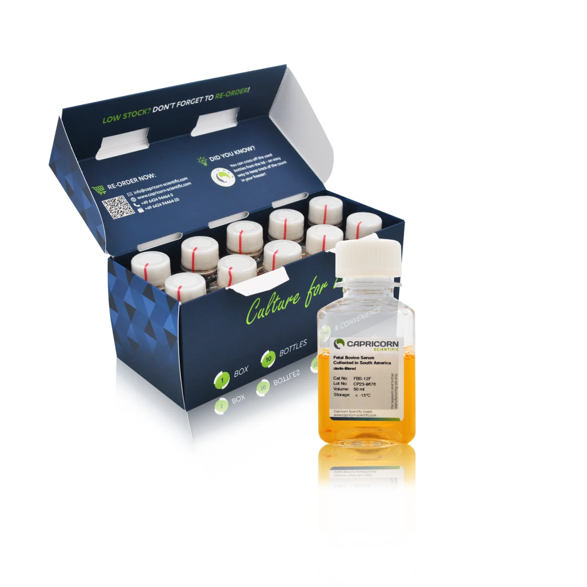 Fetální hovězí sérum (FBS) je složka krve získaná po vysrážení a následném odstranění buněčných složek. Díky své jedinečné a komplexní směsi je FBS jedním z nejdůležitějších doplňků pro podporu růstu a proliferace buněk pro in vitro buněčné kultury.