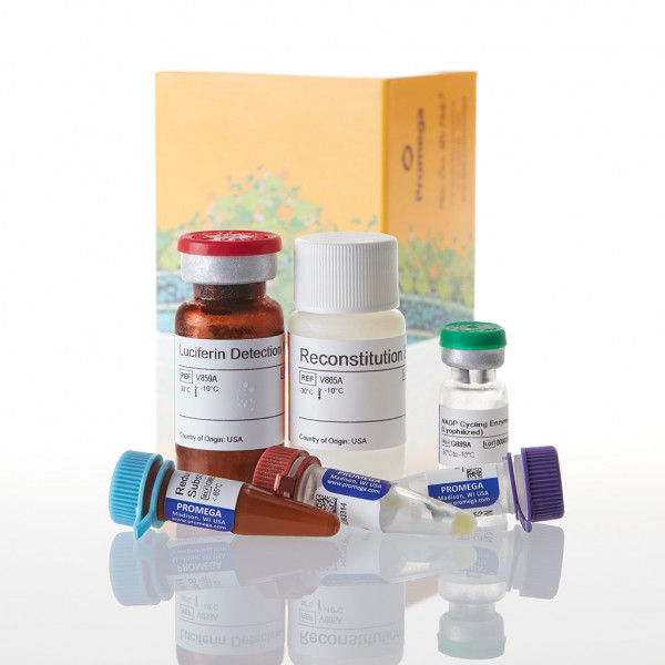 BCAA-Glo™ Assay je rychlá a citlivá metoda pro měření měření aminokyselin s rozvětveným postranním řetězcem (leucin, izoleucin, valin). Detekce probíhá pomocí specifické leucindehydrogenázy a spřažené bioluminiscenční detekce NAD(P)H vznikajícího při této reakci. Esej je vhodná pro detekci i velmi malých změn v koncentraci a metabolismu těchto aminokyselin. Jednoduchý protokol přípravy vzorky zahrnuje treatment HCl a neutralizačním pufrem přímo v jamce mikrotitrační destičky. Esej je vhodná pro měření až v 384jamkových destičkách a je vhodná i pro „high-throughput“ screeningy.