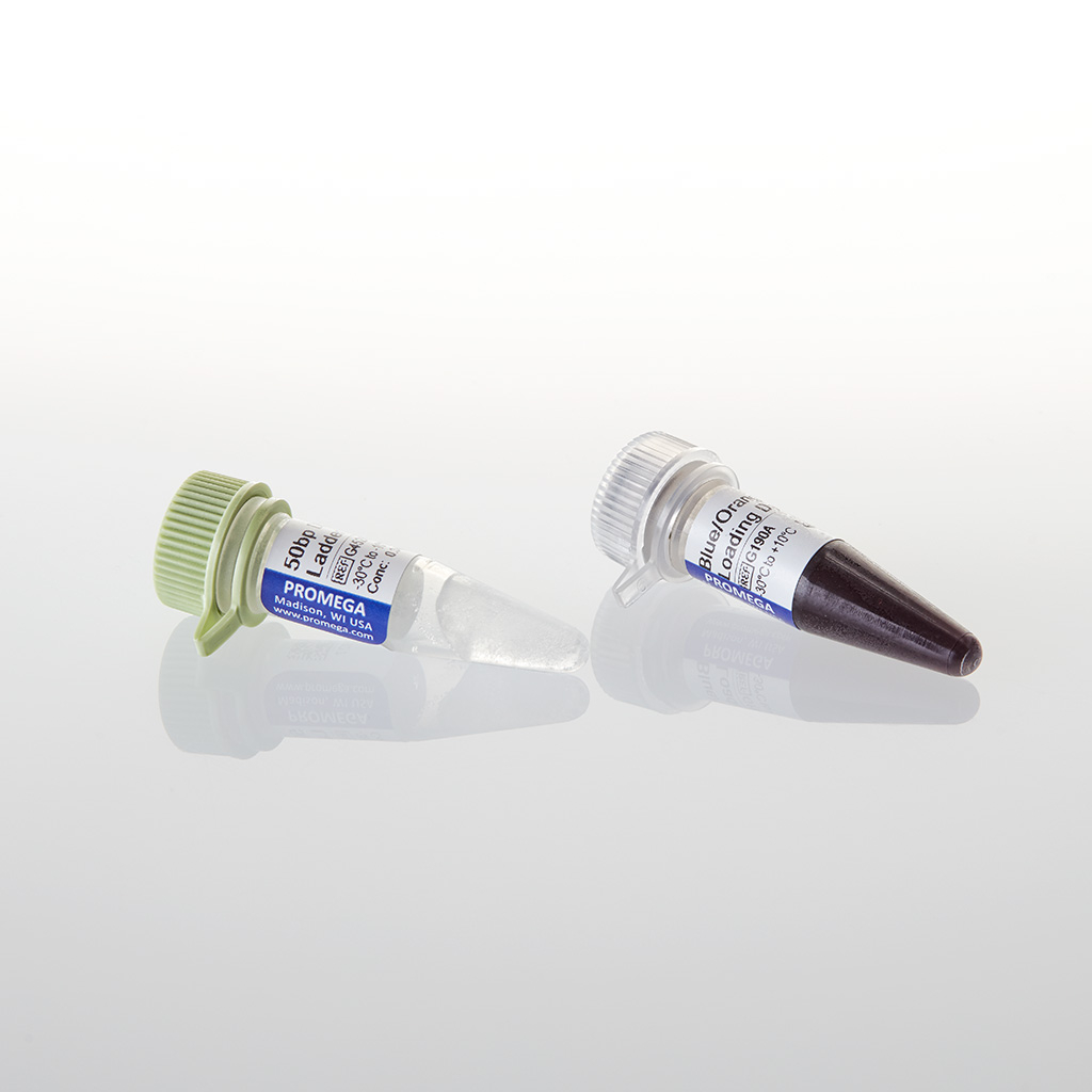 50bp DNA žebříček obsahuje 16 DNA fragmentů o velikosti 50-800bp s přírůstkem přesně 50bp a "páteřním" 1800bp fragmentem. Všechny bandy mají přibližně stejnou intenzitu, pouze 800bp má asi třikrát vyšší. Žebříček je dodáván v koncentraci 0,34 µg/µl a součástí balení je i 6X Blue/Orange Loading Dye pro indikaci průběhu elektroforézy. Doporučený objem pro nanášení na gel je 5 µl.