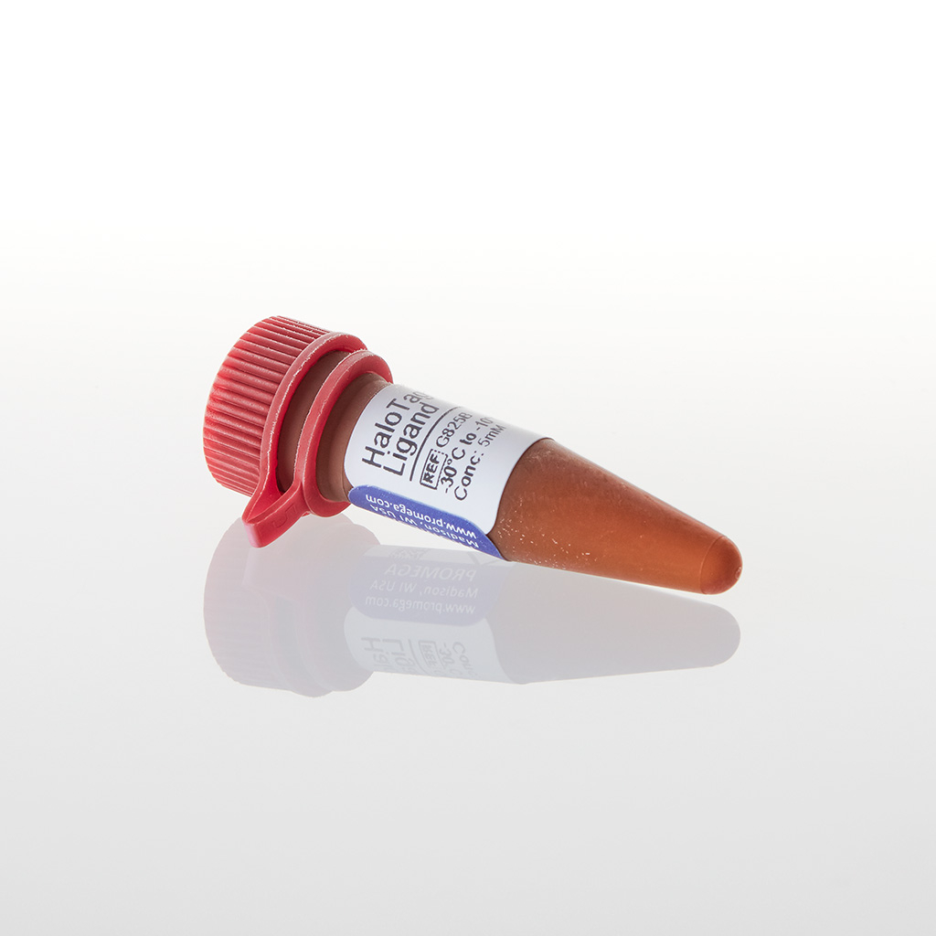 HaloTag TMR Ligand je fluorescenční značka, která za fyziologických podmínek rychle tvoří kovalentní vazbu s HaloTag značkou navázanou na sledovaný protein. TMR Ligand má excitační/emisní maximum při 555/585 nm a volně přechází přes membránu do buněk. Lze ho tedy použít pro značení proteinů na povrchu i uvnitř buněk. Díky pevné kovalentní vazbě lze ligand použít i pro značení fixovaných buněk a je stabilní i při drsnějších podmínkách.