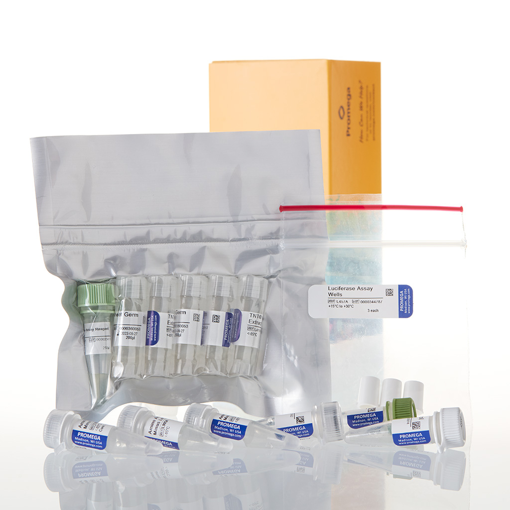 TnT Coupled Wheat Germ Extract System slouží k jednoduché a rychlé in vitro expresi eukaryotických proteinů pomocí spřažené transkripce/translace v jediné zkumavce. Tento systém má 2-6x vyšší výtěžnost proteinu než jiné systémy využívající extrakt z pšeničných klíčků a celková doba syntézy je jen 1,5 hodiny. T7 promotor je vhodný pro expresi z lineárních plazmidů.