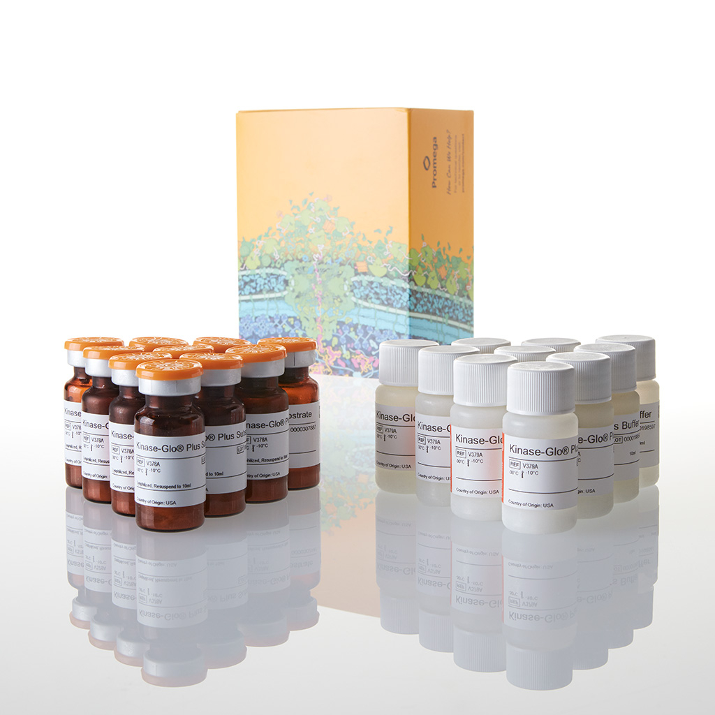 Kinase-Glo Plus je bioluminiscenční esej pro stanovení aktivity proteinových, lipidových a sacharidových kináz založená na detekci ATP. Stanovení zahrnuje pouze přidání jediného reagentu k ukončené kinázové reakci. Ten obsahuje luciferázu a její substrát, která spotřebovává zbytkové ATP v reakci a generuje bioluminiscenční signál přímo úměrný obsahu ATP a nepřímo úměrný aktivitě sledované kinázy. Esej byla navržena pro použití v 96 a 384-jamkových destičkách a poskytuje hodnoty Z‘-faktoru > 0,7. Kinase-Glo Plus poskytuje lineární signál do koncentrace 100µM ATP.