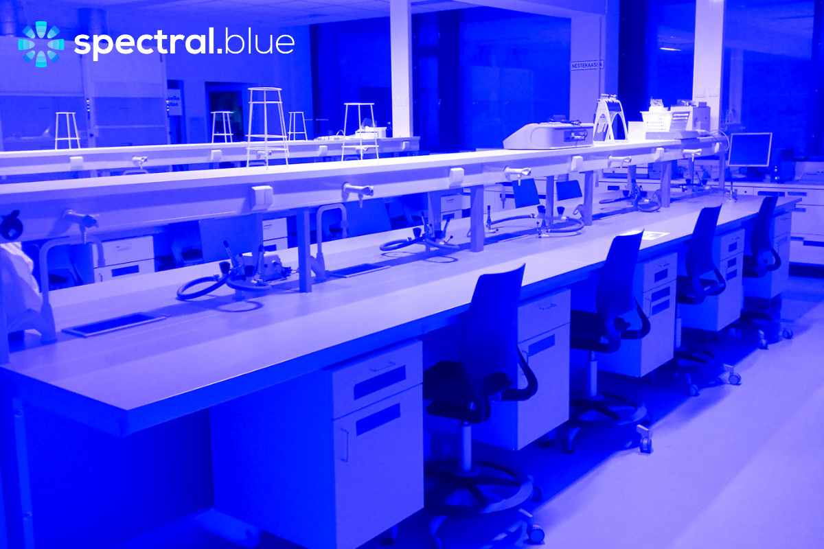 Spectral Blue™ je bezdotykový systém dezinfekce modrým světlem bez UV záření a chemikálií pro čisté prostory, laboratoře a zdravotnická zařízení.