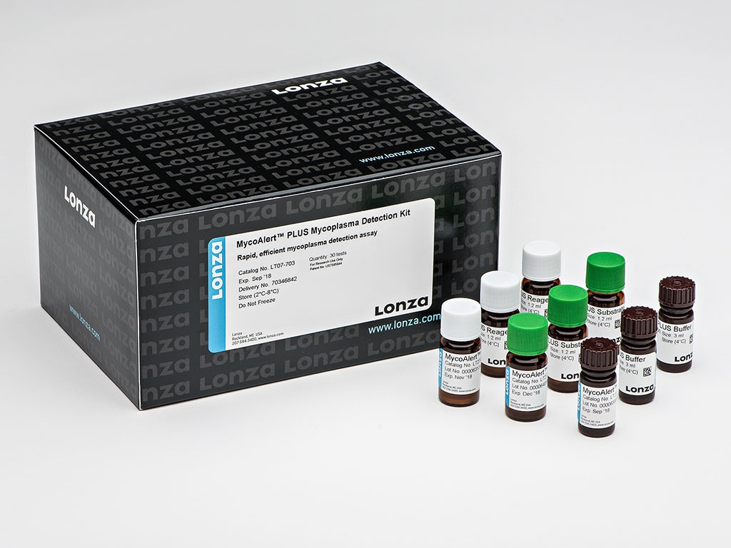 MycoAlert PLUS je selektivní biochemický test pro detekci kontaminace mykoplazmaty v buněčných kulturách. Využívá aktivitu specifických enzymů, které katalyzují konverzi ADP na ATP a nejsou přítomny v eukaryotických buňkách. Ze vzorku se odebere část supernatantu a vzorek se lyzuje. Pokud je vzorek kontaminován mykoplazmaty, uvolněné enzymy katalyzují tvorbu ATP. Vzniklé ATP je pak spotřebováno firefly luciferázou a generuje se luminiscenční signál. Oproti klasickému MycoAlert kitů má PLUS verze intenzivnější signál a je vhodná pro měření i na méně citlivých luminometrech a readerech.