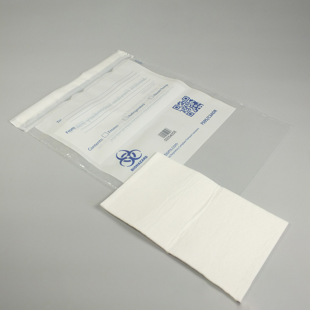 Pouch 95kPA C3 size 305 x 403mm containing 200ml absorbent sheet for transport of category B biological samples to UN3373 P650 packaging instructions