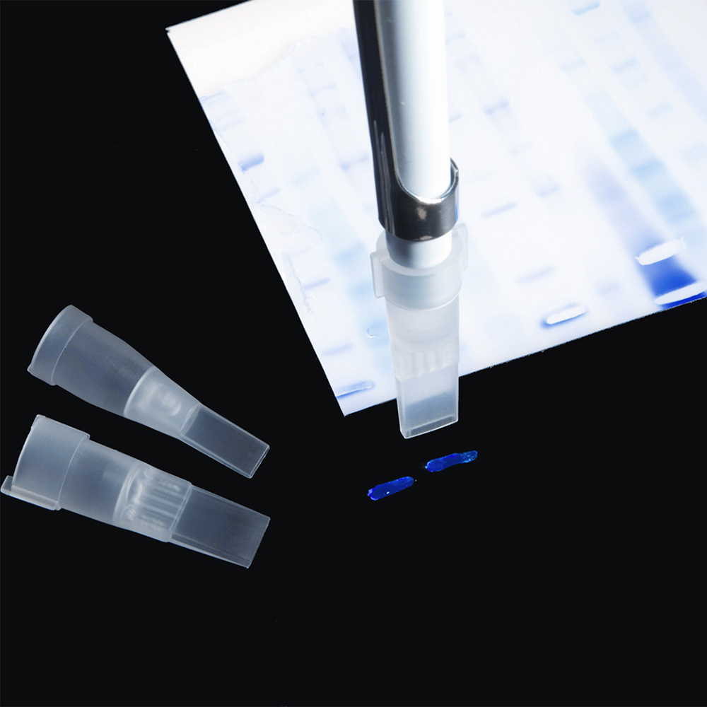 Tips gel cutting loose for excision of bands from electrophoresis gels. Suitable for use on most 1ml pipettes. Cut gel slab is 4x1mm