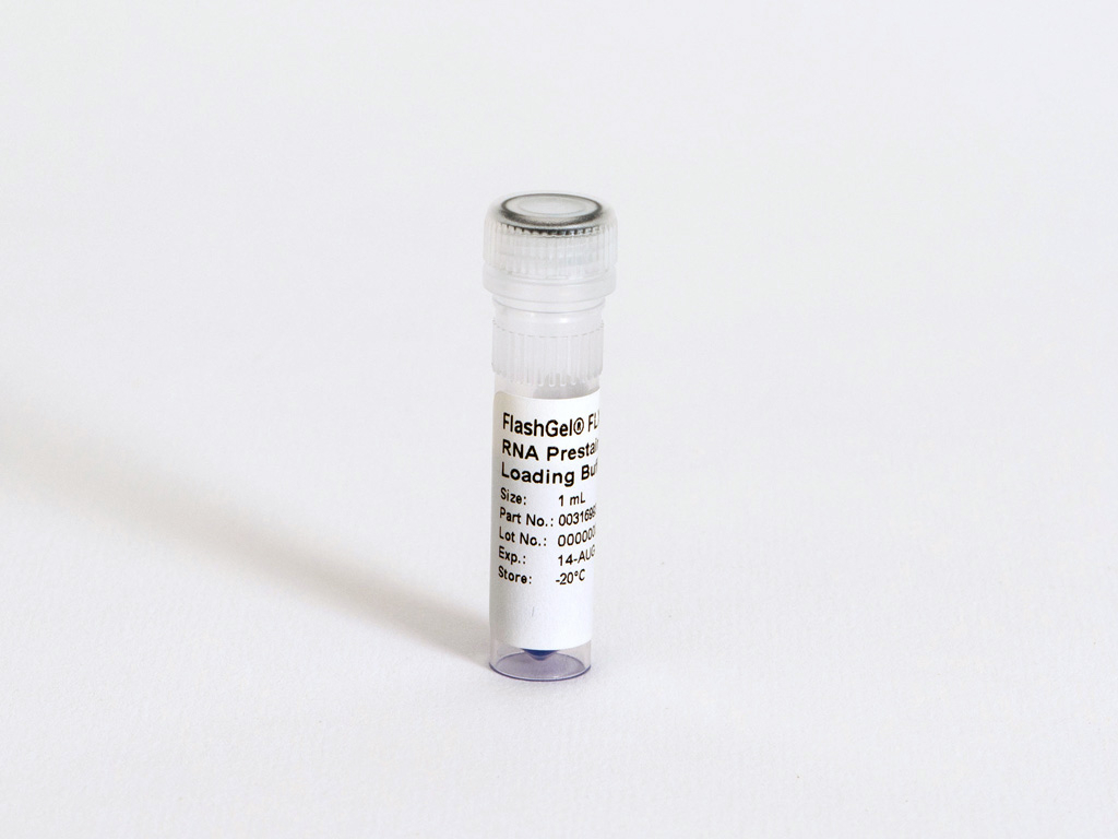 FlashGel® FLX RNA Prestain Loading Buffer je hotový pufr pro přípravu vzorků kombinovaný s RNA barvivem, speciálně navržený pro přípravu a barvení RNA vzorků před nanesením na bezbarvivové kazety FlashGel® FLX.