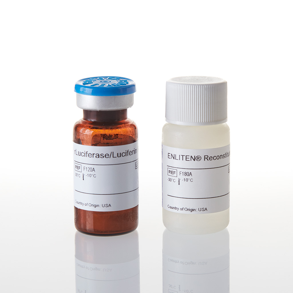 ENLITEN® rLuciferase/Luciferin Reagent ke kvantifikaci ATP v kapalných vzorcích. Reagent je navržen pro detekci látkových množství 10–11 až 10-15 mol ATP. Mezi vhodné aplikace patří nepřímé stanovení přítomnosti bakterií, kvasinek a plísní na površích, stanovení enzymů, které odbourávají ATP nebo detekce ATP v tělních tekutinách. Jedná se o vysoce citlivou (limit detekce je 10-15 mol ATP), rychlou a jednoduchou metodu. Stačí přidat reagent ke vzorku, inkubovat a následně měřit signál.